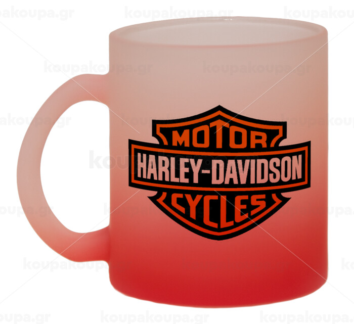 Motor Harley Davidson, Κούπα γυάλινη δίχρωμη με βάση το κόκκινο ματ, 330ml