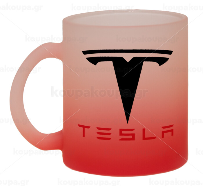 Tesla motors, Κούπα γυάλινη δίχρωμη με βάση το κόκκινο ματ, 330ml