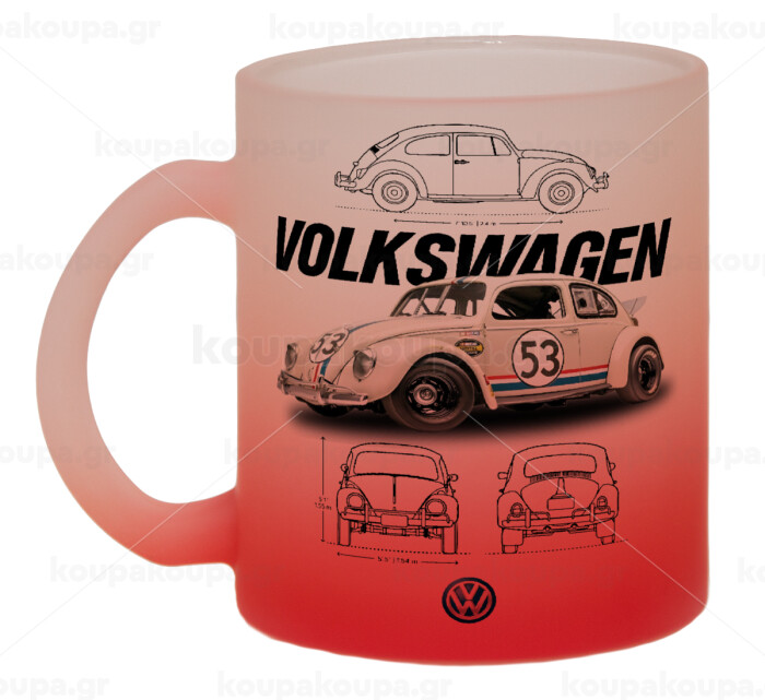 Volkswagen Beetle, Κούπα γυάλινη δίχρωμη με βάση το κόκκινο ματ, 330ml