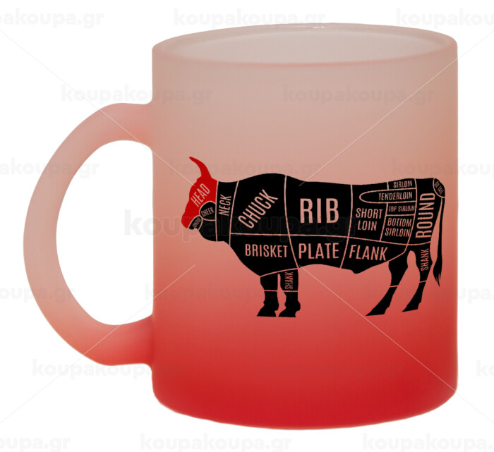 Diagrams for butcher shop, Κούπα γυάλινη δίχρωμη με βάση το κόκκινο ματ, 330ml