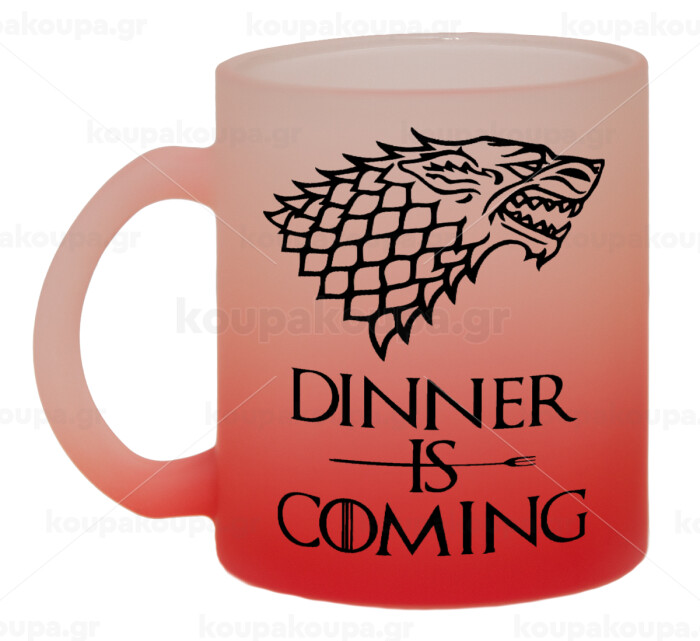 Dinner is coming (GOT), Κούπα γυάλινη δίχρωμη με βάση το κόκκινο ματ, 330ml