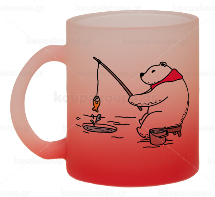 Bear fishing, Κούπα γυάλινη δίχρωμη με βάση το κόκκινο ματ, 330ml