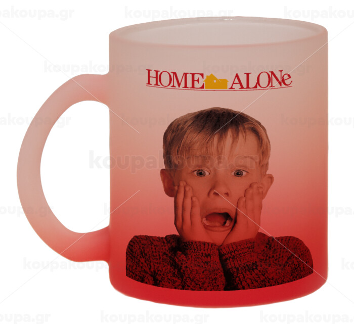 Μόνος στο σπίτι Kevin McCallister Shocked, Κούπα γυάλινη δίχρωμη με βάση το κόκκινο ματ, 330ml