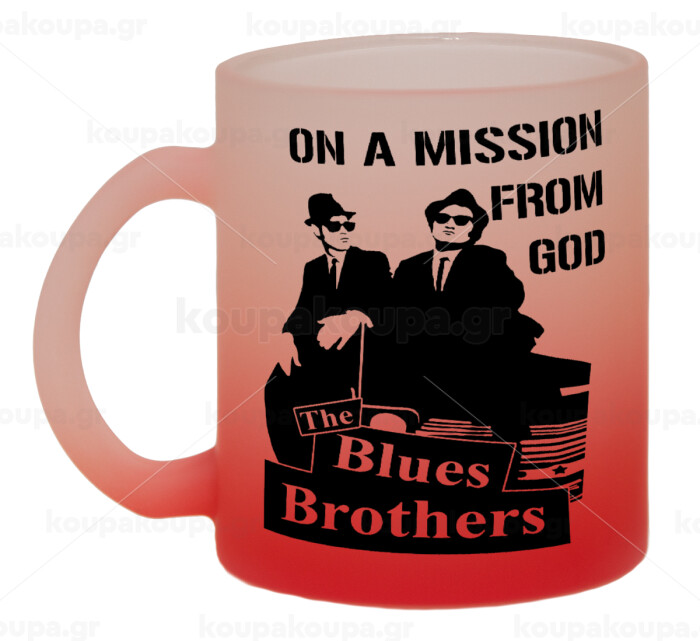 Blues brothers on a mission from God, Κούπα γυάλινη δίχρωμη με βάση το κόκκινο ματ, 330ml