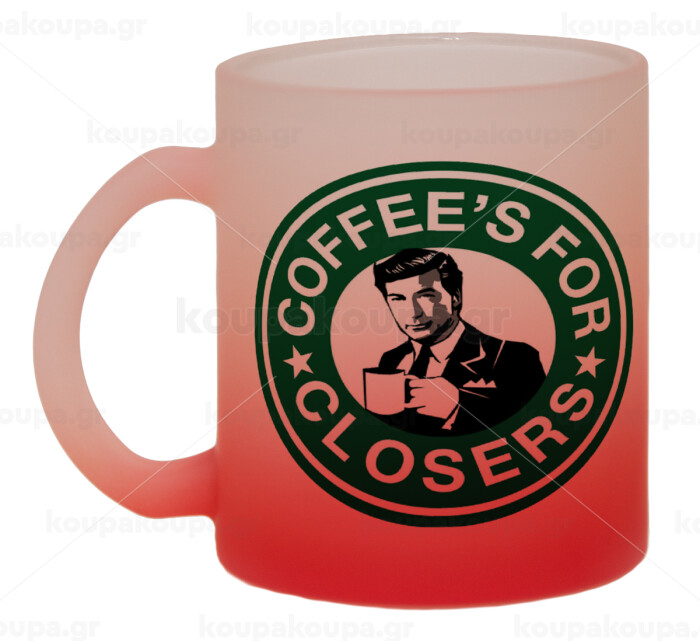 Coffee's for closers, Κούπα γυάλινη δίχρωμη με βάση το κόκκινο ματ, 330ml