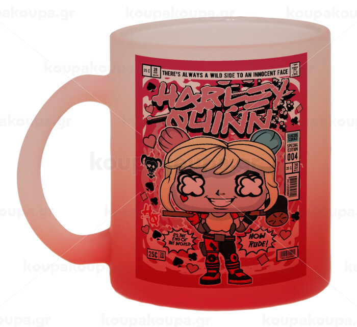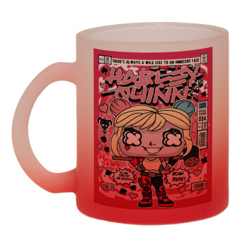 Harley Quinn (Χάρλεϊ Κουίν), Κούπα γυάλινη δίχρωμη με βάση το κόκκινο ματ, 330ml