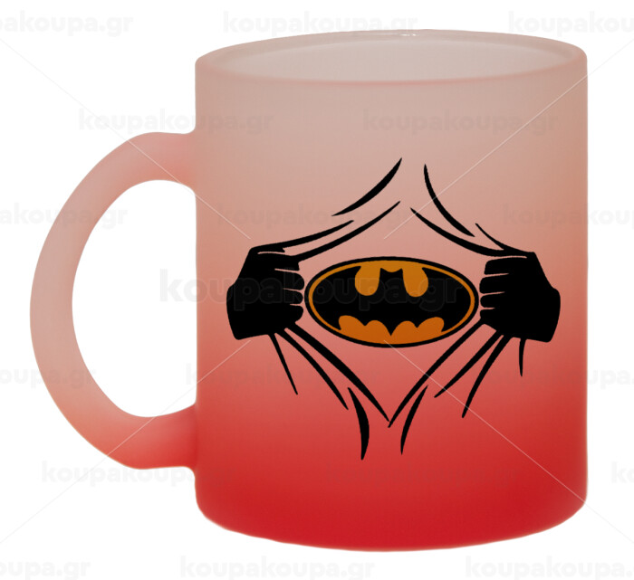 Hero batman, Κούπα γυάλινη δίχρωμη με βάση το κόκκινο ματ, 330ml
