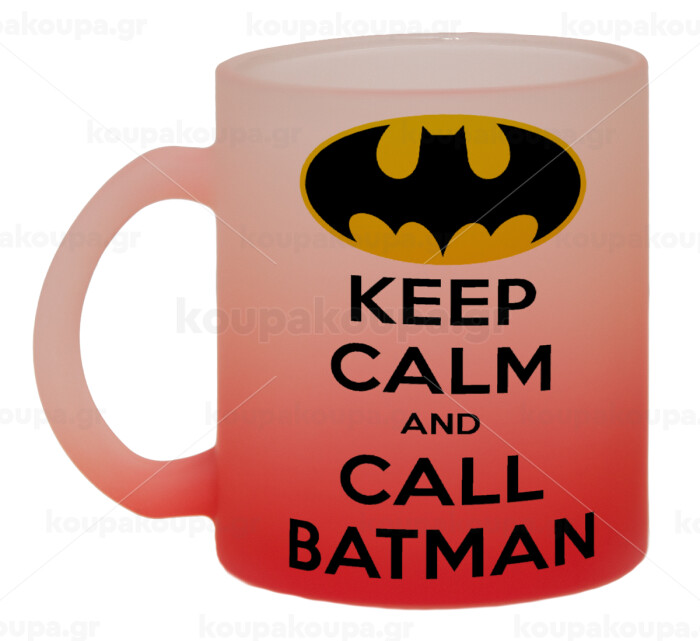 KEEP CALM & Call BATMAN, Κούπα γυάλινη δίχρωμη με βάση το κόκκινο ματ, 330ml
