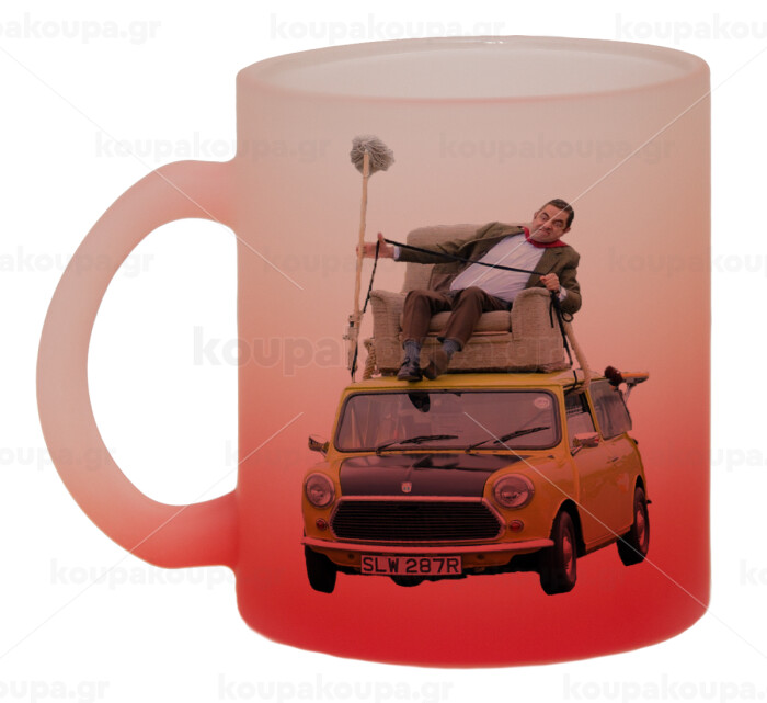 Mr. Bean mini 1000, Κούπα γυάλινη δίχρωμη με βάση το κόκκινο ματ, 330ml