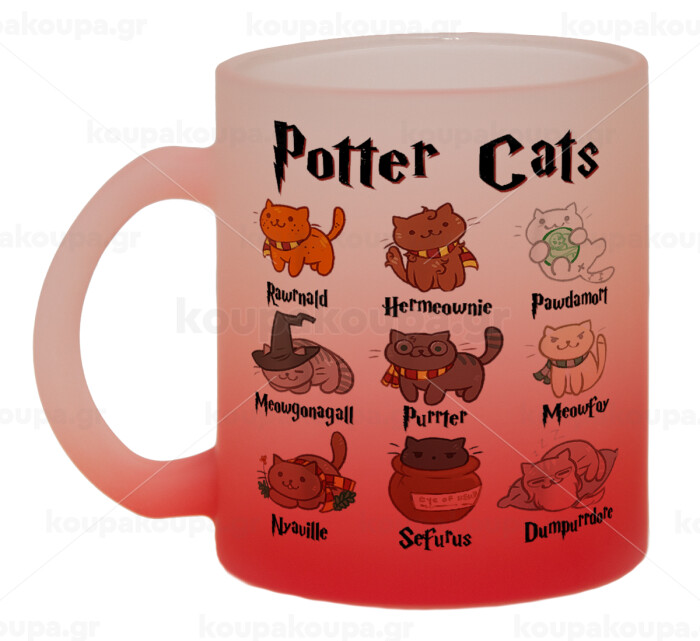 Potter Cats, Κούπα γυάλινη δίχρωμη με βάση το κόκκινο ματ, 330ml
