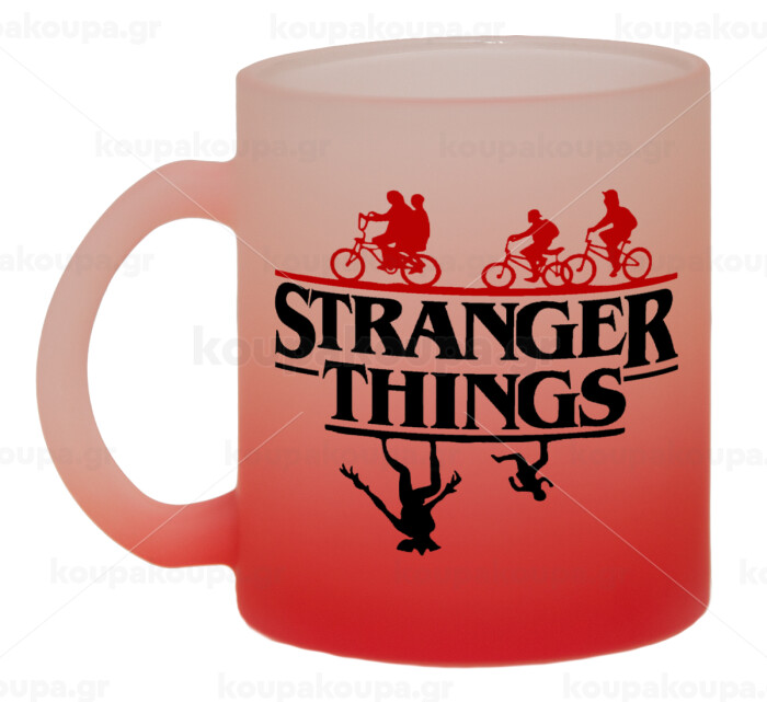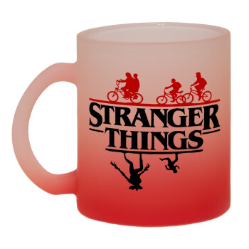 Stranger Things upside down, Κούπα γυάλινη δίχρωμη με βάση το κόκκινο ματ, 330ml