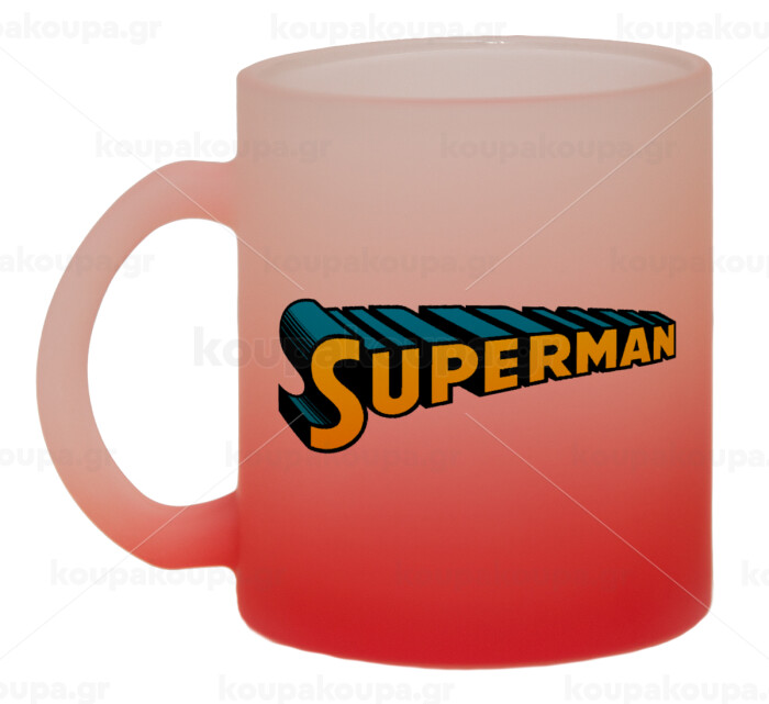 Superman vintage, Κούπα γυάλινη δίχρωμη με βάση το κόκκινο ματ, 330ml