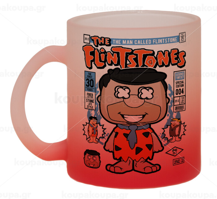 The flintstones, Κούπα γυάλινη δίχρωμη με βάση το κόκκινο ματ, 330ml
