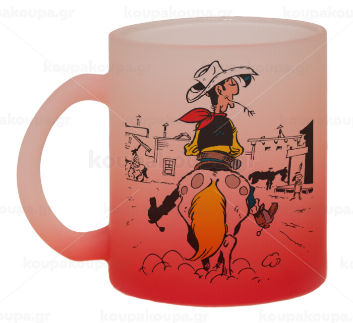 Lucky Luke comic, Κούπα γυάλινη δίχρωμη με βάση το κόκκινο ματ, 330ml
