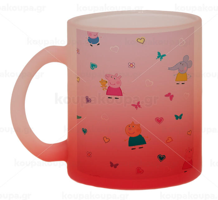 Πέππα το γουρουνάκι και οι φίλοι της, Κούπα γυάλινη δίχρωμη με βάση το κόκκινο ματ, 330ml