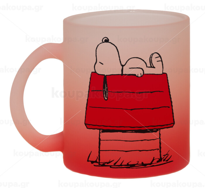 Το σπίτι του snoopy, Κούπα γυάλινη δίχρωμη με βάση το κόκκινο ματ, 330ml