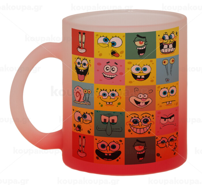 BOB spongebob and friends, Κούπα γυάλινη δίχρωμη με βάση το κόκκινο ματ, 330ml
