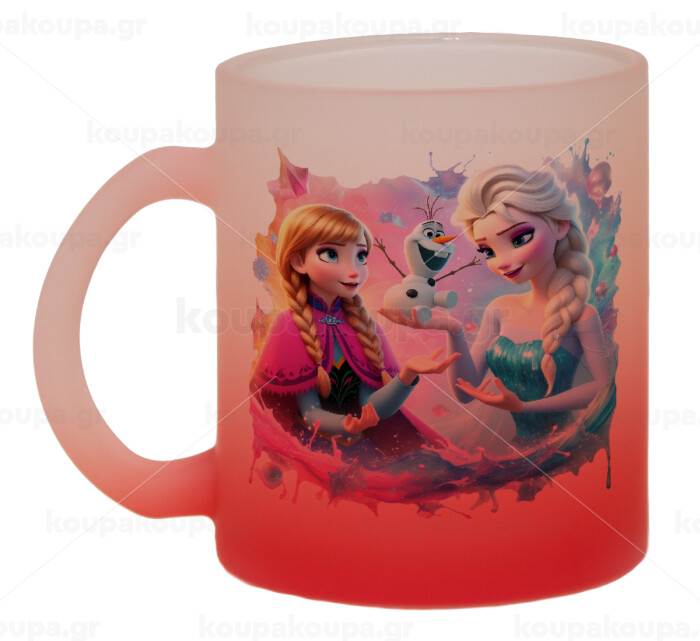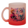 Elsa & Anna Princess, Κούπα γυάλινη δίχρωμη με βάση το κόκκινο ματ, 330ml