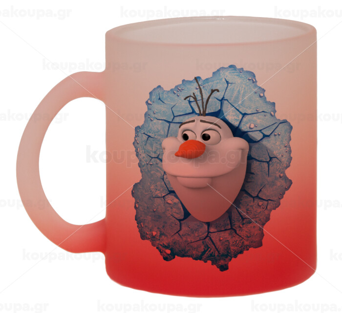 Frozen Olaf, Κούπα γυάλινη δίχρωμη με βάση το κόκκινο ματ, 330ml