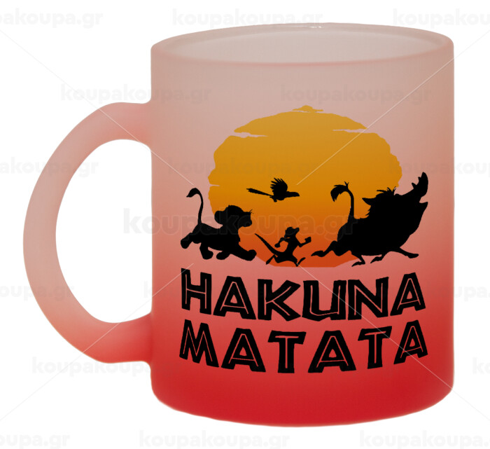 Hakuna Matata, Κούπα γυάλινη δίχρωμη με βάση το κόκκινο ματ, 330ml