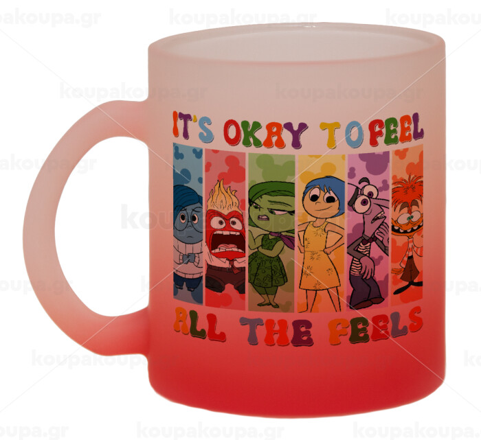 Inside Out It's Okay To Feel All The Feels , Κούπα γυάλινη δίχρωμη με βάση το κόκκινο ματ, 330ml