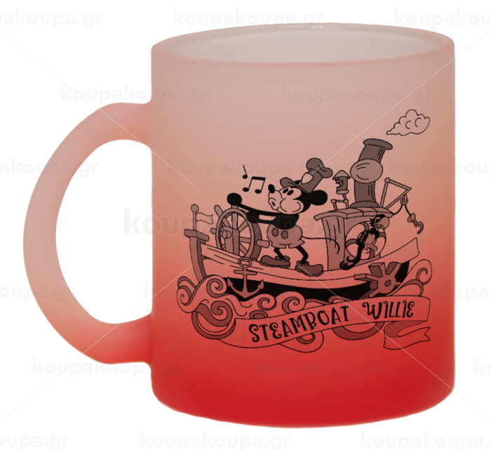 Mickey steamboat, Κούπα γυάλινη δίχρωμη με βάση το κόκκινο ματ, 330ml