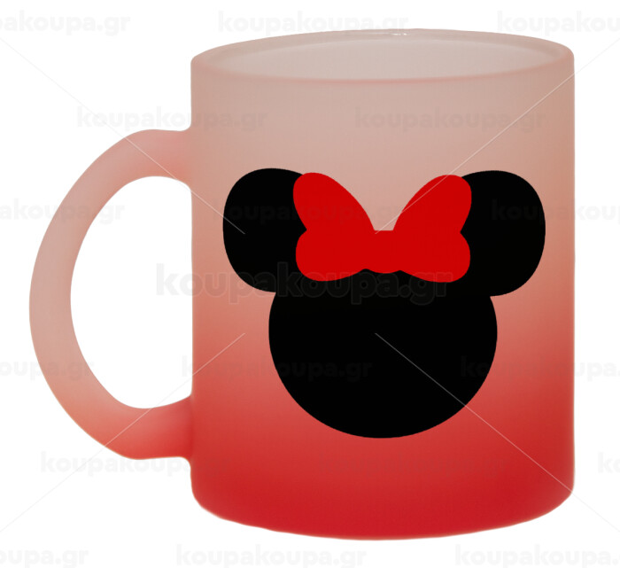 Minnie head, Κούπα γυάλινη δίχρωμη με βάση το κόκκινο ματ, 330ml