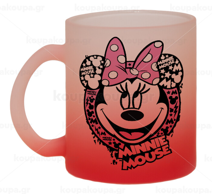 Minnie mouse, Κούπα γυάλινη δίχρωμη με βάση το κόκκινο ματ, 330ml