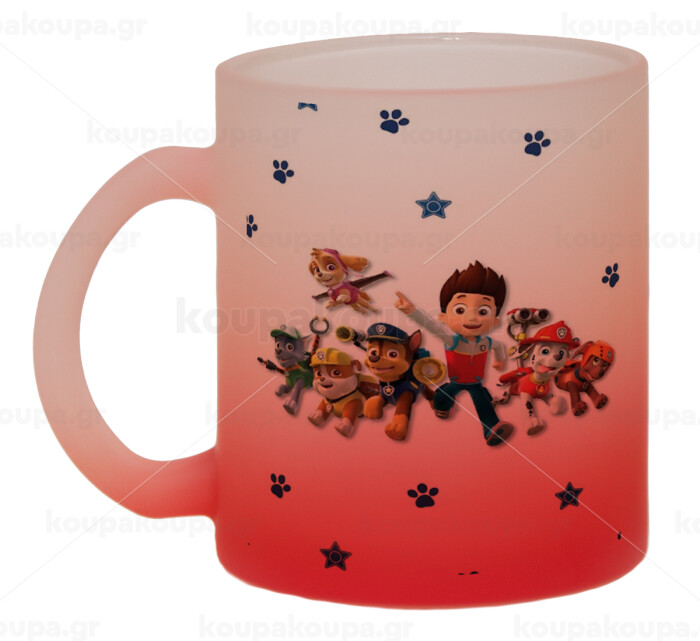 paw patrol, Κούπα γυάλινη δίχρωμη με βάση το κόκκινο ματ, 330ml