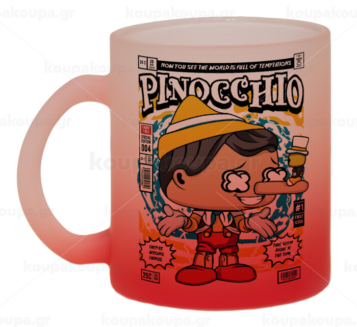 Pinocchio, Κούπα γυάλινη δίχρωμη με βάση το κόκκινο ματ, 330ml