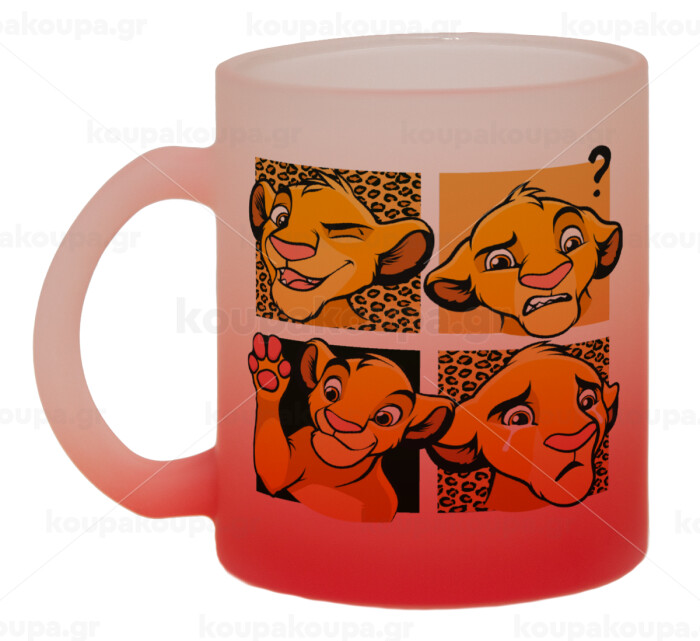 Simba, lion king, Κούπα γυάλινη δίχρωμη με βάση το κόκκινο ματ, 330ml