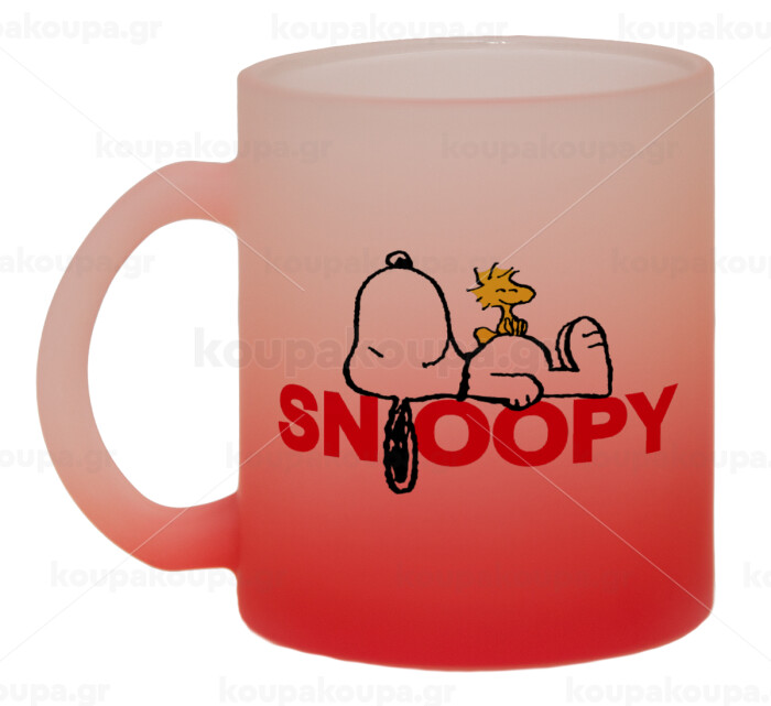 Snoopy sleep, Κούπα γυάλινη δίχρωμη με βάση το κόκκινο ματ, 330ml