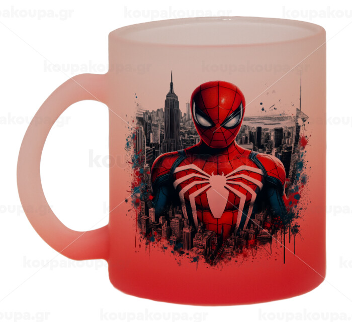 Spiderman City, Κούπα γυάλινη δίχρωμη με βάση το κόκκινο ματ, 330ml