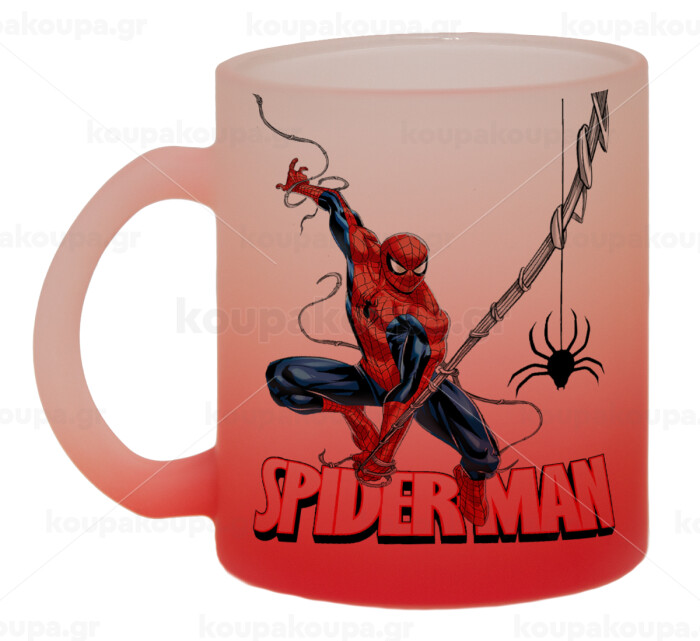 Spiderman fly, Κούπα γυάλινη δίχρωμη με βάση το κόκκινο ματ, 330ml