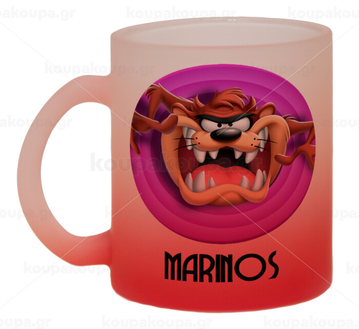 Taz, Κούπα γυάλινη δίχρωμη με βάση το κόκκινο ματ, 330ml
