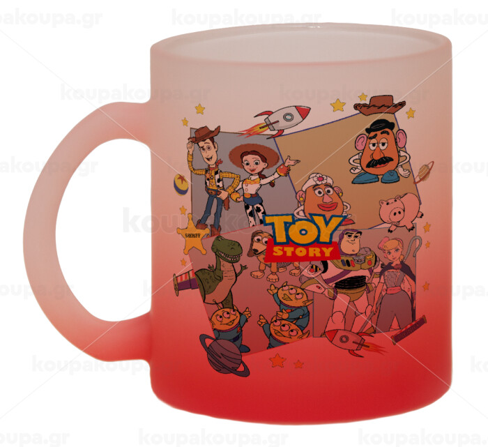 toystory characters, Κούπα γυάλινη δίχρωμη με βάση το κόκκινο ματ, 330ml
