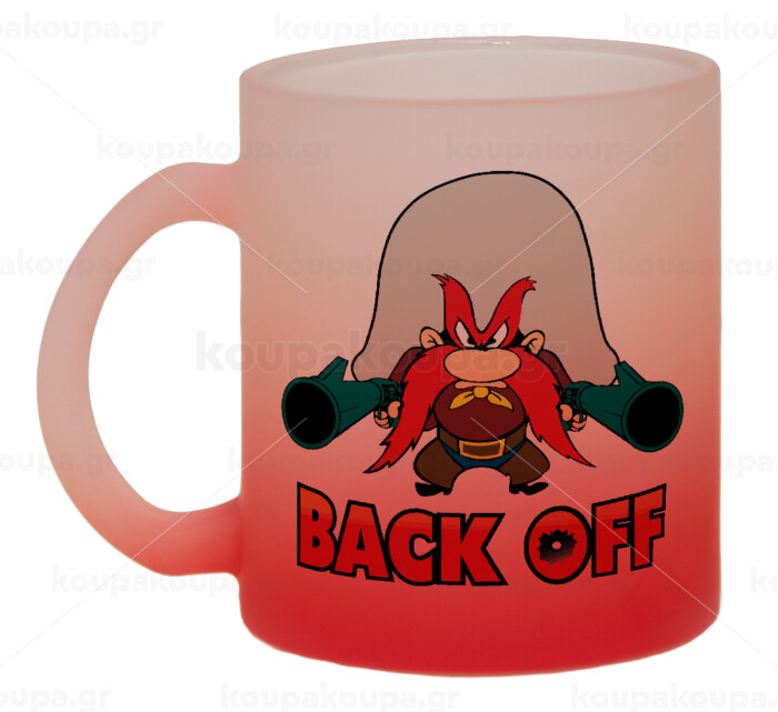 Yosemite Sam Back OFF, Κούπα γυάλινη δίχρωμη με βάση το κόκκινο ματ, 330ml