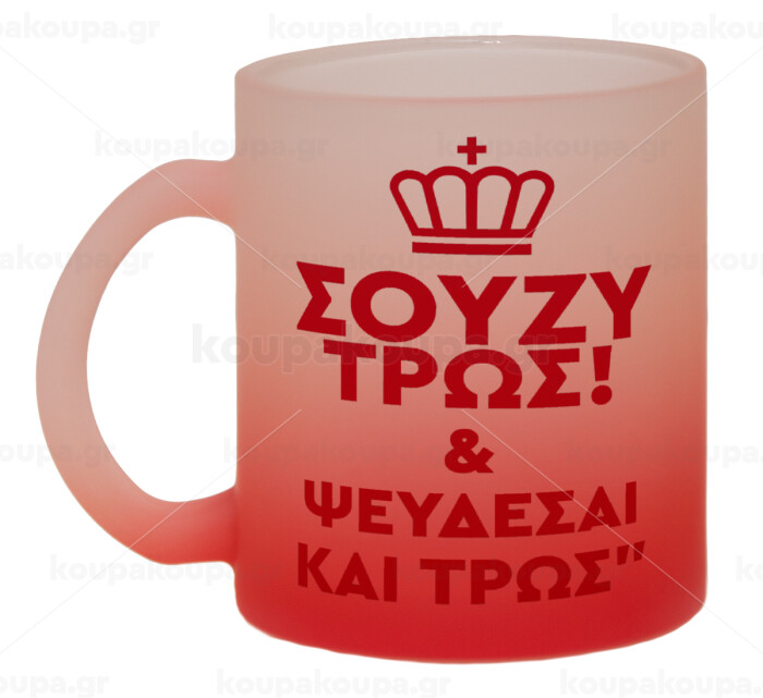 Σούζυ και ψεύδεσαι και τρως, Κούπα γυάλινη δίχρωμη με βάση το κόκκινο ματ, 330ml