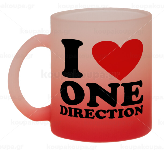 I Love, One Direction, Κούπα γυάλινη δίχρωμη με βάση το κόκκινο ματ, 330ml