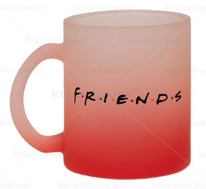 Friends, Κούπα γυάλινη δίχρωμη με βάση το κόκκινο ματ, 330ml