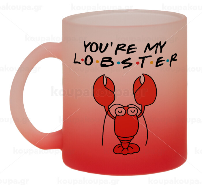 Friends you're my lobster, Κούπα γυάλινη δίχρωμη με βάση το κόκκινο ματ, 330ml