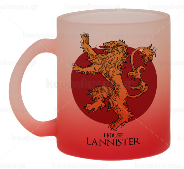 House Lannister GOT, Κούπα γυάλινη δίχρωμη με βάση το κόκκινο ματ, 330ml