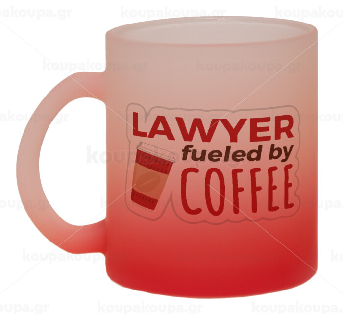 Lawyer fueled by coffee, Κούπα γυάλινη δίχρωμη με βάση το κόκκινο ματ, 330ml