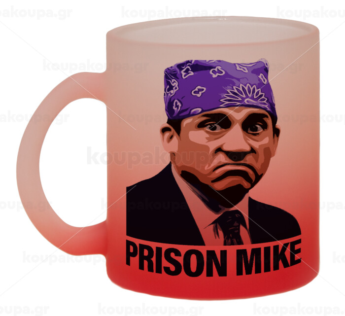 Prison Mike The office, Κούπα γυάλινη δίχρωμη με βάση το κόκκινο ματ, 330ml