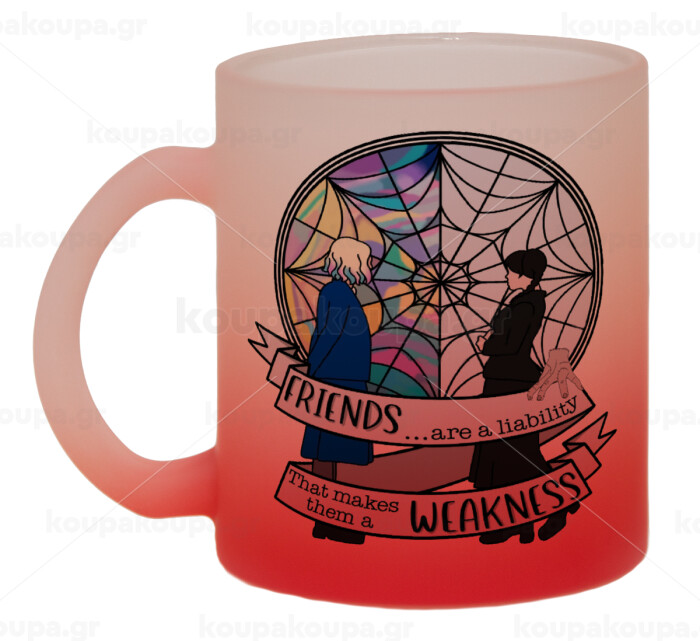 Friends, Κούπα γυάλινη δίχρωμη με βάση το κόκκινο ματ, 330ml