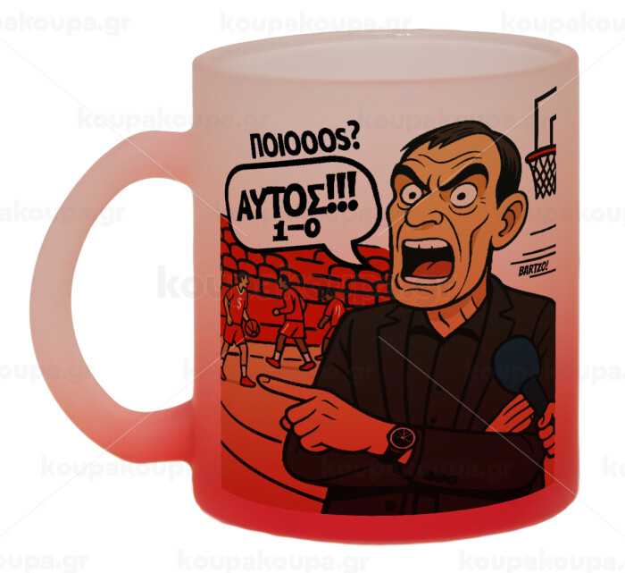 Μπαρτζό, Ποιος? Αυτός!!! 1-0, Κούπα γυάλινη δίχρωμη με βάση το κόκκινο ματ, 330ml