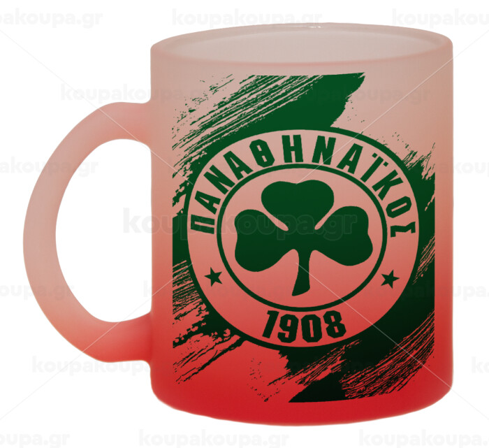 Π.Α.Ο., Κούπα γυάλινη δίχρωμη με βάση το κόκκινο ματ, 330ml