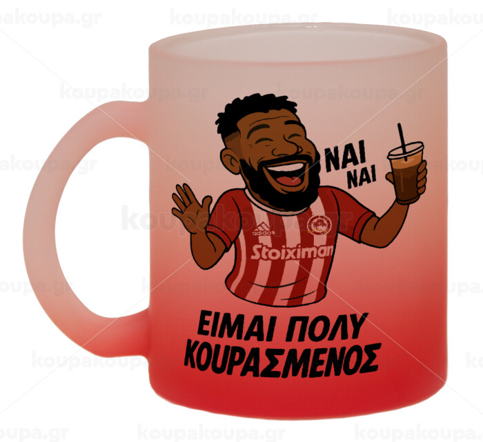 Ροντινέι, "ΠΟΛΥ ΚΟΥΡΑΣΜΕΝΟΣ", Κούπα γυάλινη δίχρωμη με βάση το κόκκινο ματ, 330ml