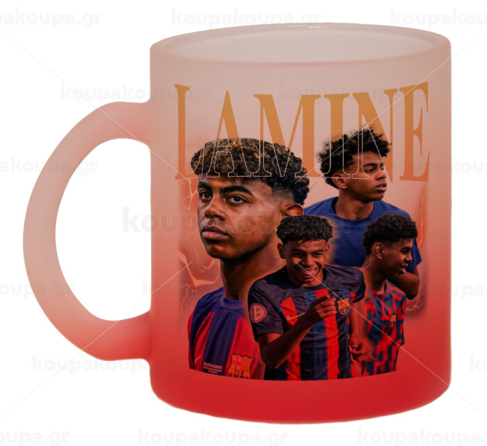 lamine yamal FCB, Κούπα γυάλινη δίχρωμη με βάση το κόκκινο ματ, 330ml