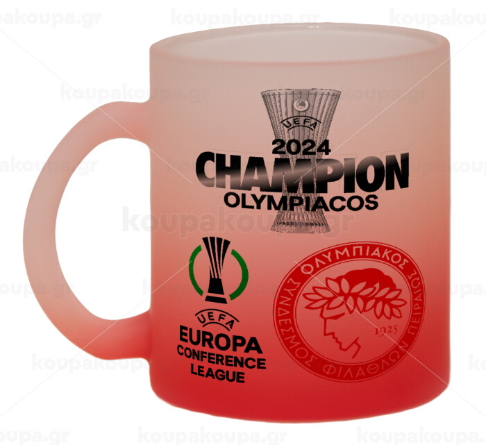 Olympiacos UEFA Europa Conference League Champion 2024, Κούπα γυάλινη δίχρωμη με βάση το κόκκινο ματ, 330ml